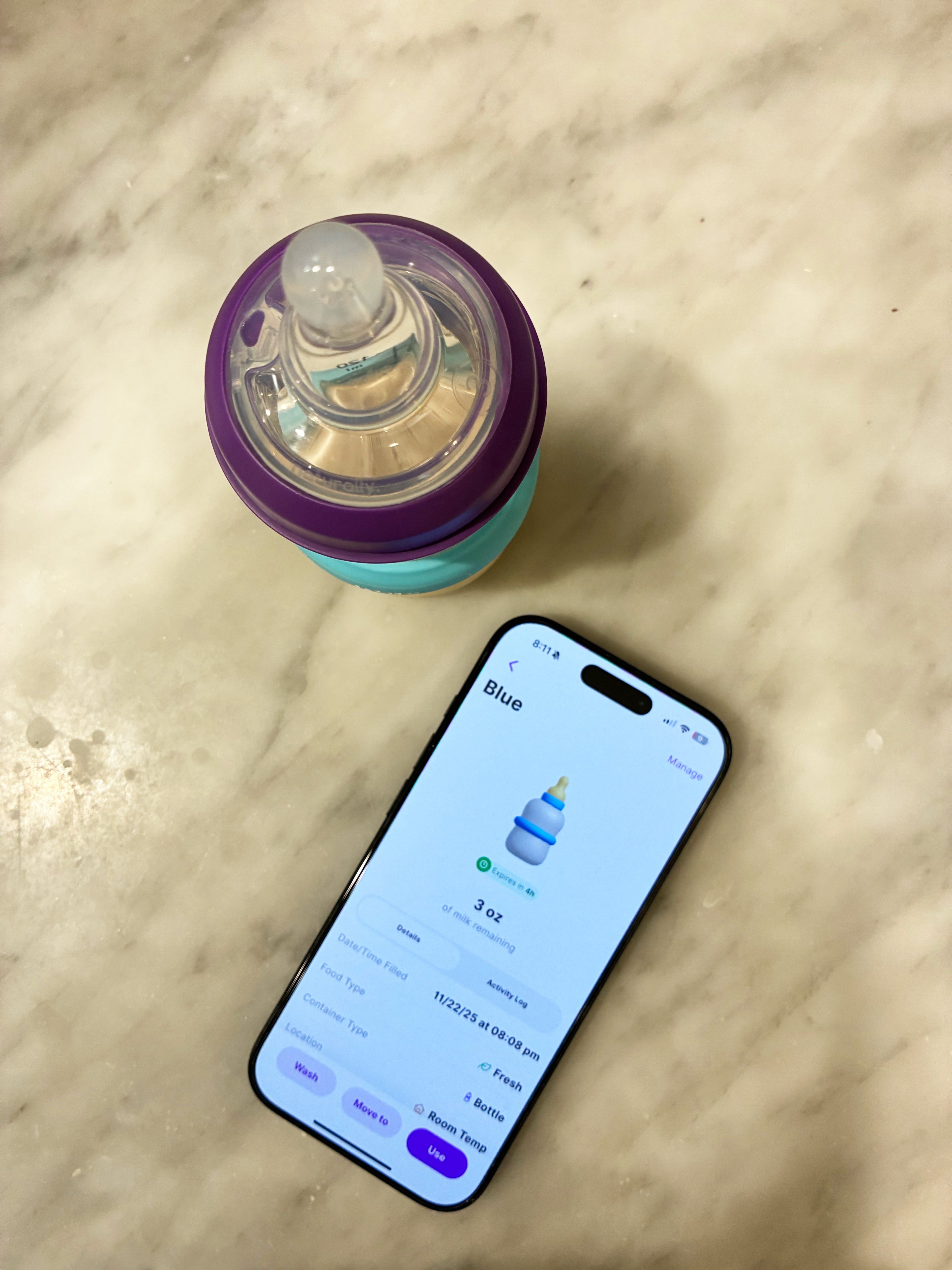 Since baby formula has shorter and more limited storage timeframes, we recommend entering your bottles as “baby formula” if you mix breast milk with baby formula.